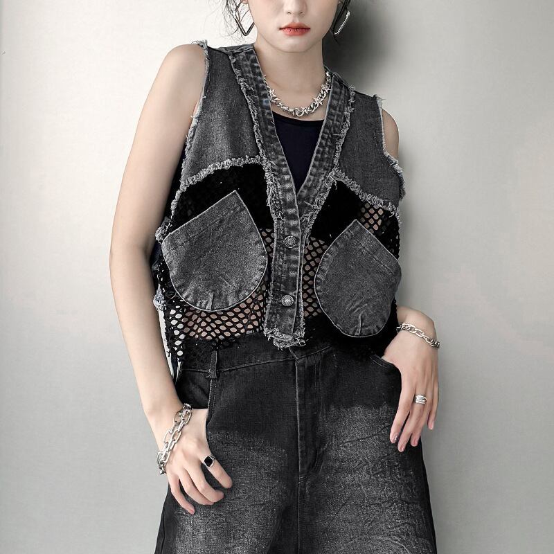 u23618 トップス 保温 デニム レディース ベスト カーディガン 通勤 2024春夏新作